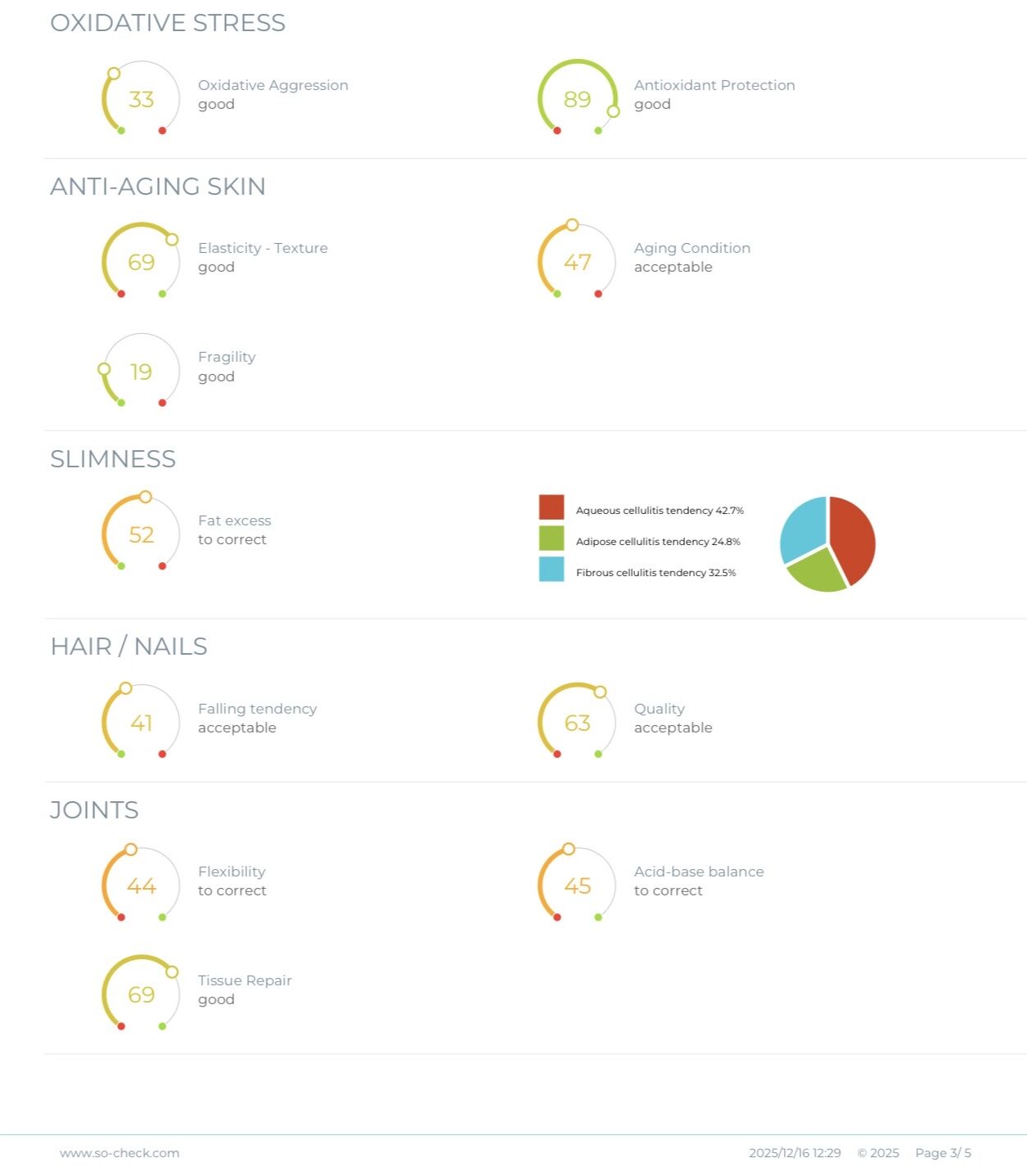 By analysing how the skin tissue responds to this signal, the system compares your results to ideal reference values stored in the software. This allows us to identify possible imbalances or excesses.