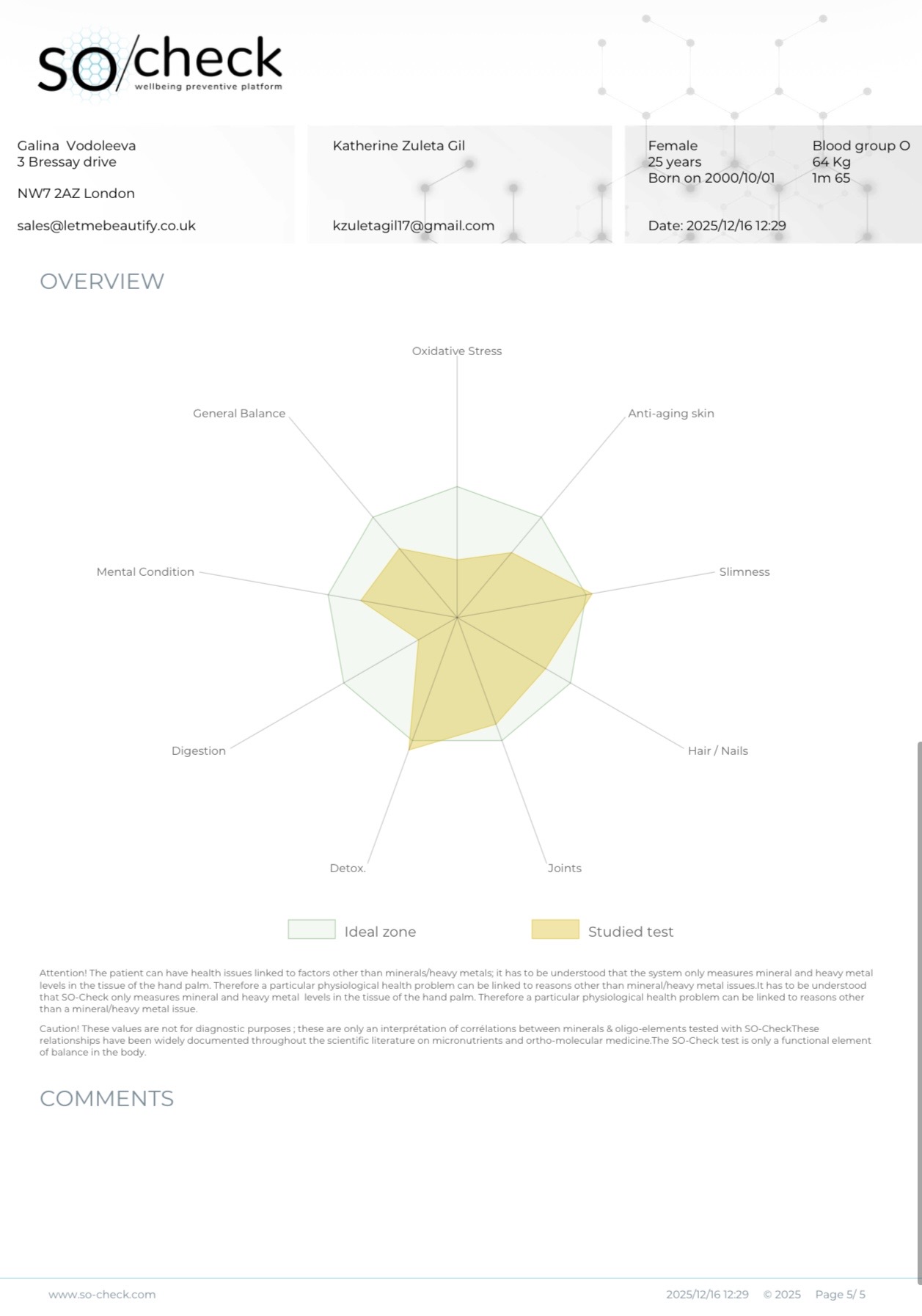 This technology-led assessment offers valuable insights into your body’s nutritional and functional balance, helping guide smarter lifestyle, supplement, and treatment decisions.